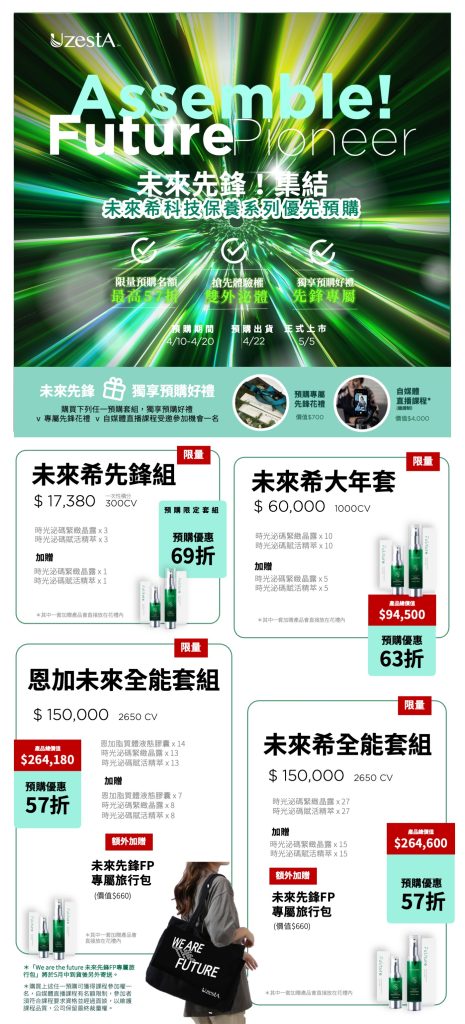 10 4 月 促銷, 最新消息 未來先鋒 ! 集結 未來希科技保養系列優先預購2025 年 4 月 10 日 By kevin.su@uzesta.com Facebook Twitter Line WhatsApp Copy URL 繼續閱讀