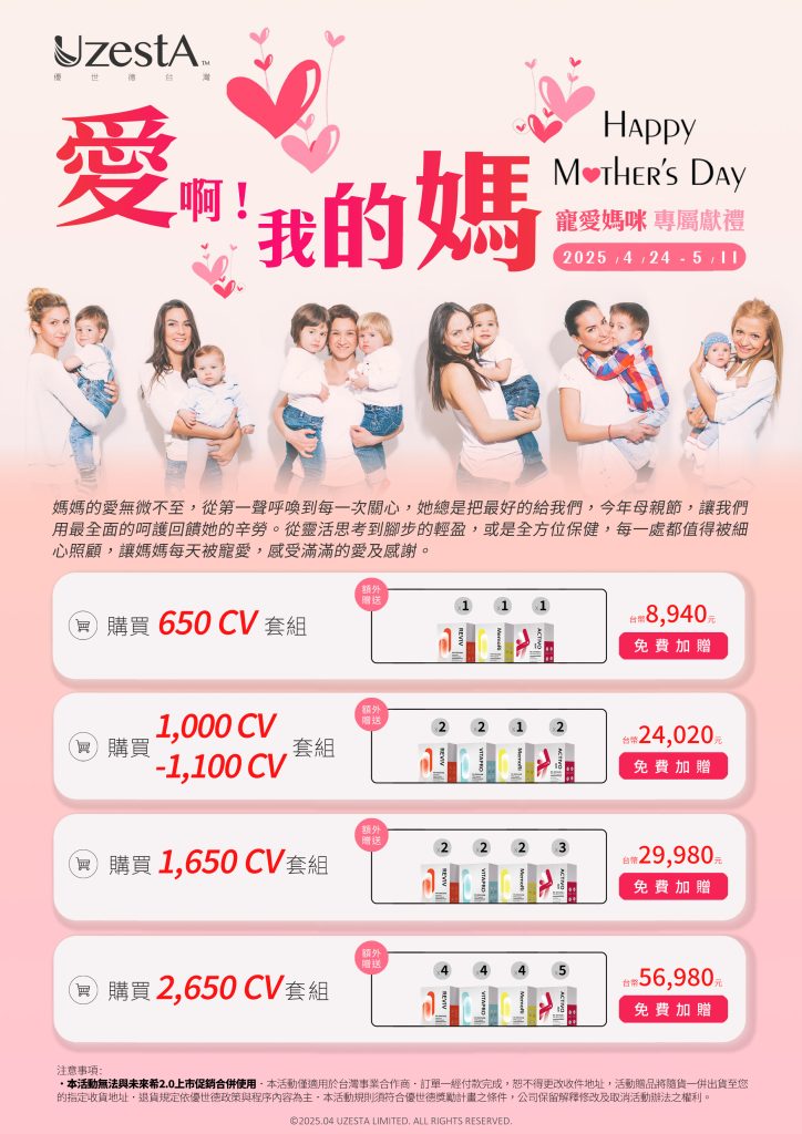 24 4 月 促銷, 最新消息 愛啊!我的媽 寵愛媽咪 專屬獻禮2025 年 4 月 24 日 By kevin.su@uzesta.com Facebook Twitter Line WhatsApp Copy URL 媽媽的愛無微不至,從第一聲呼喚到每一次關心,她總是把最好的給我們,今年母親節,讓我們 用最全面的呵護回饋她的辛勞。從靈活...繼續閱讀