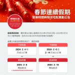公司公告, 最新消息 春節假期優世德台北辦公室營業時間與宅配配送時間調整2024 年 2 月 21 日 Posted by kevin.su@uzesta.com 01 2 月 金龍賀新歲 龍攜好運來 適逢農曆春節假期,優世德台灣辦公室營業時間與宅配配送時間將有所調整 Facebook Twitter Line WhatsApp Copy URL